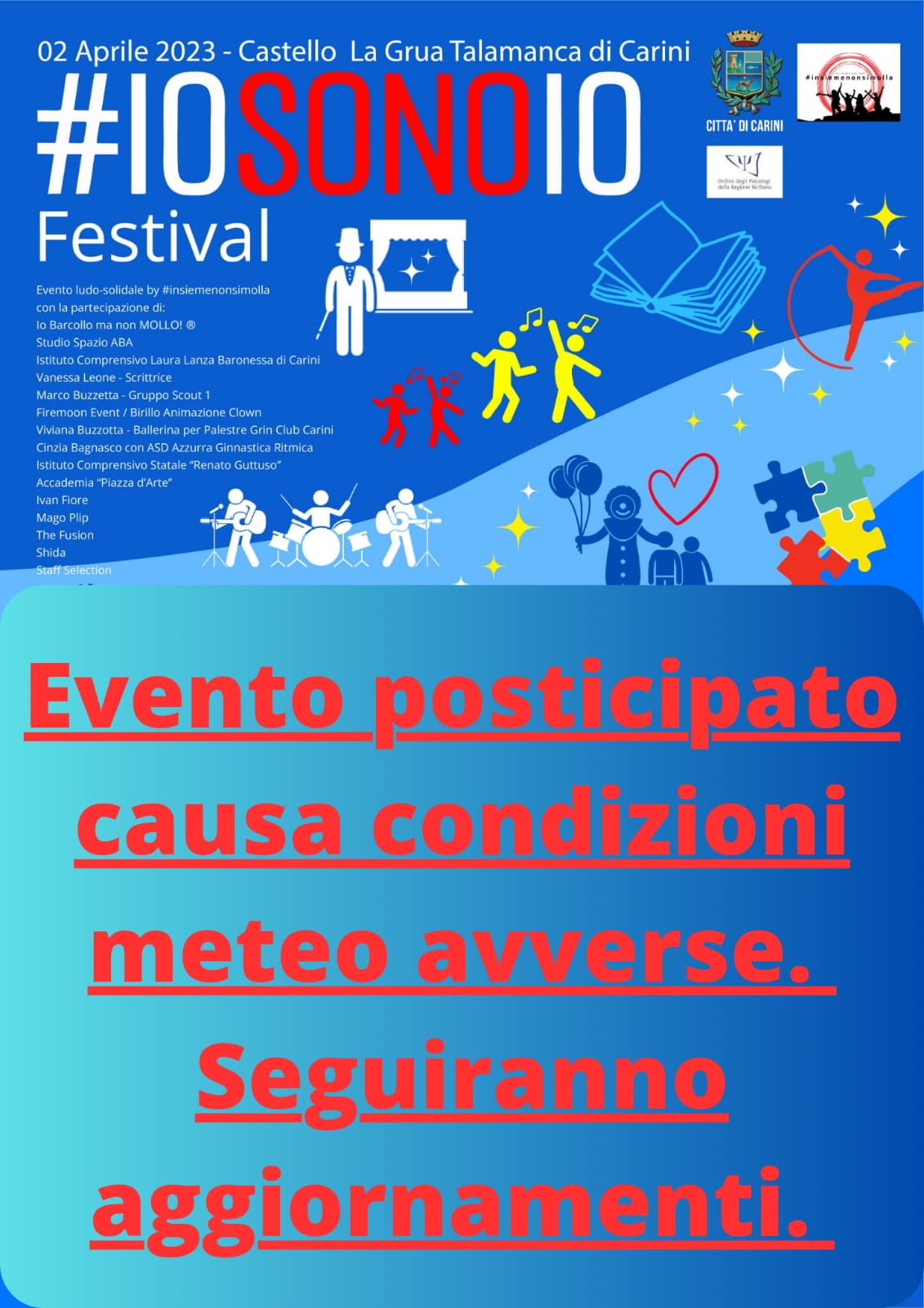 Circolare n° 445 Posticipazione evento ludo-solidale _#iosonoio festival_ - domenica 2 aprile al Castello La Grua Talamanca di Carini